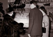 Formaat : 13 x 18 cm. -Β Koningin Fabiola ondertekent de "Verklaring van Eigendom", waarbij zij en Koning Boudewijn de eerste reders ter visserij zijn geworden van het motorvissersschip O.1 "Fabiola". HierΒ op het stadhuis. Naast haar koning Boudewijn. Rechts, burgemeester Jan Piers. Links, stadsecreatarisΒ Michel Surmont