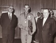 Formaat :Β 24 x 18 cm. -Β De winnaar van de 3de etappe van de Ronde van BelgiΓ«,Β Namen-Oostende, Ward Sels, ontvangt de prijs uit handen van de heer Β De RamΓ©e Roger,Β directeur van het Casino-Kursaal. Ward Sels werd 12e in de eindstand en reed voor de wielerploeg van Solo-Superia.