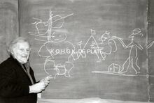 Formaat : 15 x 10 cm.- Omer Vilain legde namens "De Plate" bloemen neer aan het monument van James Ensor in het Leopoldpark.