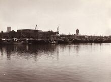 Formaat : 20 x 25 cm.- De Mercator jachthaven tussen de Vindictvelaan (links), het stadhuis (Leopold II-laan), rondpunt Vuurkruisenplein enLeopold III-laan richting station. In de achtergrond de haven