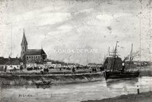 Formaat : 13 x 18 cm. - Op de achtergrond de wijk Konterdam met de Sint-Catharinakerk
