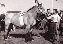 Formaat : 13 x 18 cm. - Provinciale wedstrijd voor paarden op de Wellingtonrenbaan. Deze fraaie Brabantse merrie werd kampioen bij de oude merries