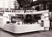 Stand van radio Panorama op handelsbeurs in de hall van het oud station op het Ernest Feysplein.