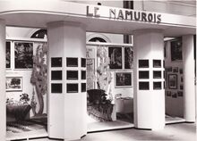 Stand van de provincie Namen op een handelsbeurs in de hall van het oud station op het Ernest Feysplein.