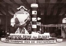 Stand van Oostende op een handelsbeurs in de hall van het oud station op het Ernest Feysplein. ( Nota Bene alles in het Frans !)