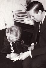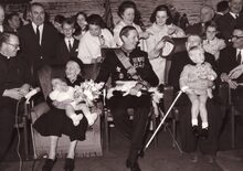 Formaat : 18 x 13 cm. - Burgemeester Jan Piers haalt de jarige af bij haar thuis.