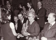 Formaat : 13 x 18 cm. - Het echtpaar wordt in de bloemetjes gezet door burgemeester Jan Piers.