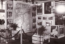 Formaat : 13 x 18 cm. - De stand van Oostende op de handelsbeurs in de Albert hall van het oud station op het Ernest Feysplein. Rechts een jonge Arnold Devos (ingenieur architect, hoofd van de stedelijke dienst Urbanistie), en zijn echtgenote.