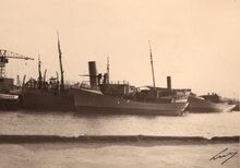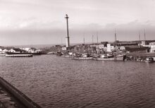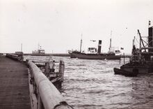 Formaat : 13 x 18 cm. - Een vissersvaartuig van de PΓͺcheries Γ Vapeur in de havengeul
