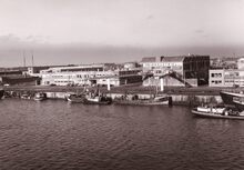 Formaat : 13 x 18 cm. - Panoramisch zicht op het Visserijdok en de Hendrik Baelskaai v