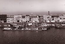 Formaat : 13 x 18 cm. - De Ijslandvaarder O.305 FranΓ§ois Musin in het Visserijdok. Rechts de ijsfabriek Froid IndustrielΒ en links ernaast de petroleummaatschappij Purfina aan de HendrikΒ Baelskaai.