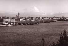Formaat 13 x 18 cm. - Panoramisch zicht op het Visserijdok en de Hendrik Baelskaai richting zee