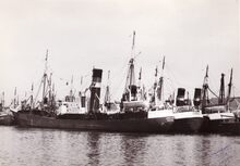 Formaat : 13 x 18 cm. - VissersvaartuigenΒ van rederij M.V. in het Visserijdok.