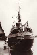 Formaat : 13x 18 cm. - Het Duitse onderzoeksschip Anton Dohrninhet Visserijdok nabij de Vismijn. Het vaartuig was tevens een visserijwachtschip. Het was uitgerust met een operatiekamer en een hospitaal met 8 bedden.