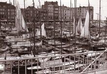 Enkele vissersboten in het Montgomerydok tegenover het clubgebouw van de N.S.Y.C..