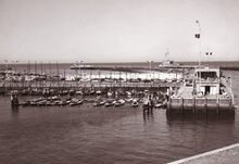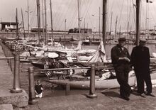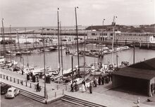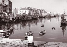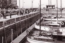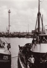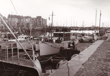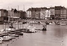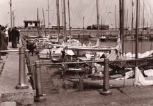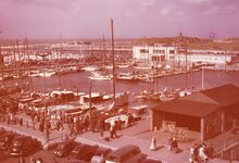 Formaat : 13 x 18 cm. - Jachten in het Montgomerydok. Rechts het gebouwtje dat gebruikt werd voor de visverkoop. Hier staat nu de Vistrap.