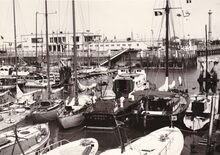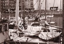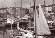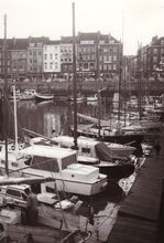 Formaat : 18 x 13 cm. - Jachten in het Montgomerydok. Op de achtergrond de Visserskaai met rechts de Cirkelstraat.