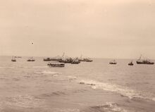 Formaat : 13 x 18 cm. - Op de achtergrond de vismijn