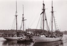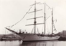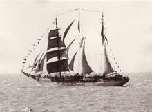 Formaat : 13 x 18 cm. - De Polarhav, het schip waarmee de Belgische expeditie naar de zuidpool voer, loopt de haven binnen.