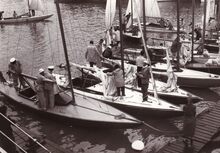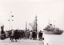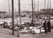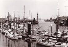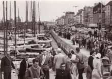 Formaat : 13 x 18 cm. - Een massa volk langs de Visserskaai. Zij komen de jachtjes bekijken die in het Montgomerydok liggen.