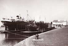 Formaat : 10 x 15 cm. - Een carferry ontscheept zijn lading te Dover.