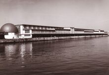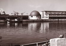 Formaat : 13 x 18 cm. - Zicht op het Visserijdok. Het ronde gebouw is het haringmijn (of sprotmijn) en de Vismijn aan de Vismijnlaan.