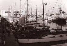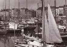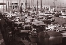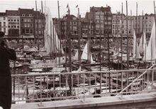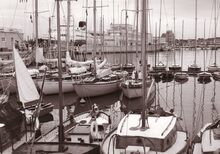 Formaat : 13 x 18 cm. - Jachten in het Montgomerydok bij het gebouw van het NRSYC. In de achtergrond een carferry en het gebouw van het loodswezen