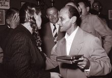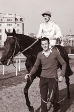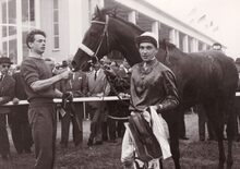 Gelukwensen voor jockey BERETTI op de renbaan.