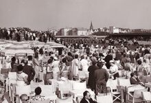 Het terras van de "Bagatelle" op een zomerdag op de renbaan.Op de achtergrond de Wellingtonstraat,hoek Sportstraat.