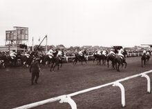 Viering van jockeys (?) op de Wellingtonrenbaan.