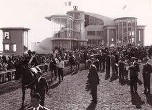 Formaat : 13 x 18 cm. - Bouw van de Koninklijke Loge op de renbaan. Voltooid in 1955.