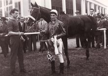 Formaat : 13 x 18 cm. - Jockey Palmer met Fast Fox in de paddock