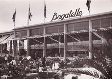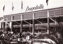 Formaat : 13 x 18 cm. - Veel volk op de terrassen van Petit Nice (Albert I -promenade). De Kursaal is nog niet herbouwd.