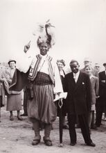 "Prince Monolulu, een stukje folklore uit de Engelse turfwereld. Dik onder de pluimen kwam de "prins" soms naar Wellington om er zijn tips aan goedgelovige turfisten door te spelen"