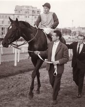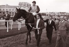 Formaat : 18 x 13 cm. - Jockey met paard op de Wellingtonrenbaan.