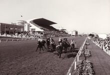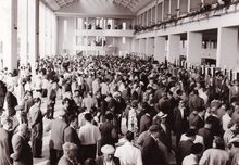 Formaat : 13 x 18 cm. - Veel volk om een weddenschap af te sluiten bij de bookmakers