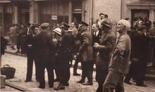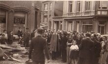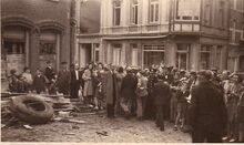 Β 3 foto's 13.5 x 8.5 cm. -Β De inboedel van een collaborateur wordt op straat geworpen en in brand gestoken