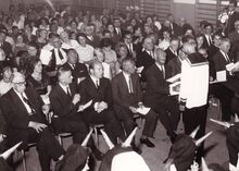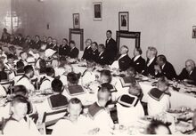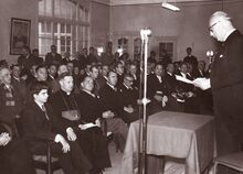 "Op dinsdag 30 oktober 1956 vond de plechtige viering plaats van vijftig jaar IBIS. Hier de academische zitting waar het woord gevoerd wordt door voorzitter Ernest-John Solvay".
