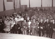 Formaat : 13 x 18 cm. - Ontvangst van Prins Alexander naar aanleiding van vijftig jaar Ibis op 30 oktober 1956. Rechts naast de prins, de voorzitter Ernest-John Solvay, Willy Weemaes (secretaris van Leopold III), burgemeester Adolphe Van Glabbeke.