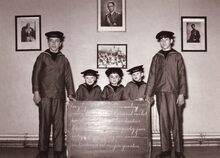 Formaat : 13 x 18 cm. - Leerlingen opgesteld voor de school.