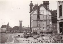 Foto : 9 x 6 cm. - Het Wapenplein. Ruine van het stadhuis