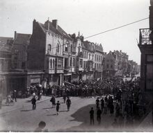 Ostende - Rue de la Chapelle. - Links, detail van het stadhuis op het Wapenplein