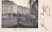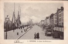 De Visserskaai. Visserssloepen aangemeerd in het Schuildok, nu Montgomerydok.