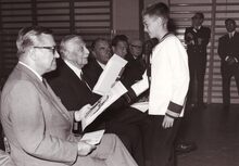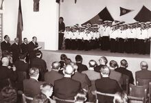 Formaat : 13 x 18 cm. - Links directeur René David (directeur 1951-1959) en directeur Hubert Caestecker (directeur 1959-1989)