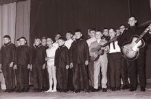 Formaat : 13 x 18 cm. - Sportieve leerlingen treden op tijdens een schoolfeest.