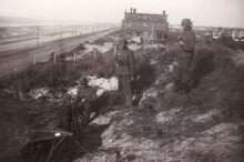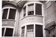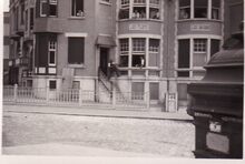 Foto : 9 x 6 cm. - Villa bezet door Duitse militairen (vermoedelijk in Raversijde) augustus 1940