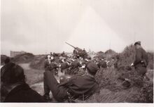 Foto : 9 x 6 cm. - Duitse soldaten oefenen op het strand van Raversijde.