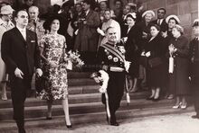 Prins Rainier en Prinses Grace van Monaco tijdens hun ontvangst op het Oostends Feestpaleis bij de jumelage tussen beide steden.