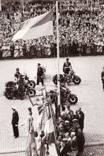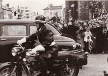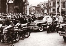 Oostende op Matchless 500 twin motorenbegeleiden het monegaskische prinsenpaar na een