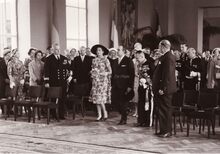 Prins Rainier van Monaco heeft net een krans neergelegd met de hulp van de Ibisjongens,aan het monument der Zeelieden op het Zeeheldenplein.